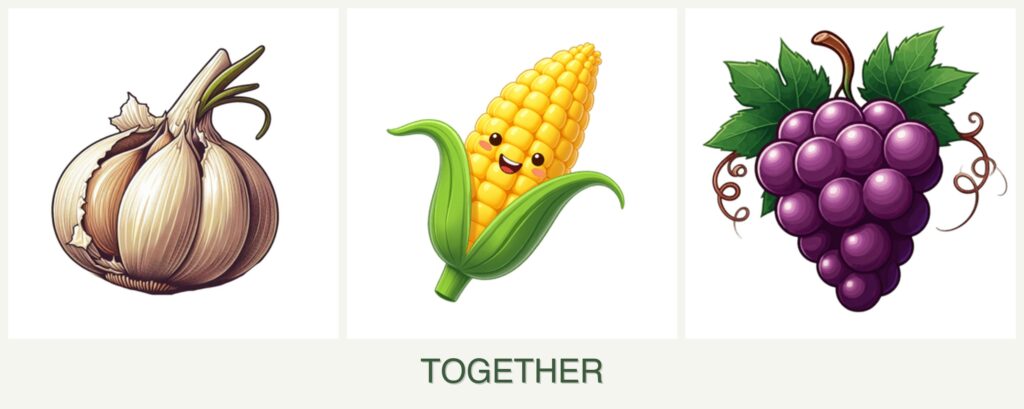 While planting garlic, corn, and grapes together isn’t recommended, there are general benefits to companion planting: