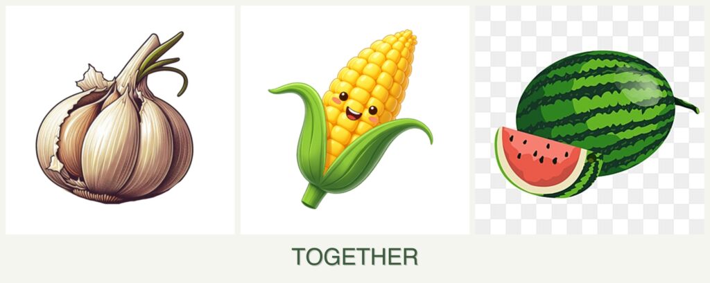 - Pest Repellent Properties: Garlic’s strong aroma deters many pests, protecting both corn and melons.