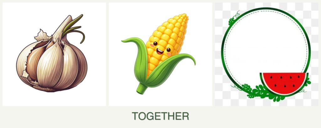 - Pest Repellent Properties: Garlic can deter pests that may target corn and watermelons.