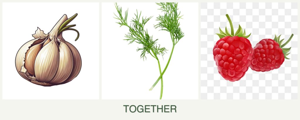 - Pest Repellent Properties: Garlic repels aphids and other pests, protecting raspberries and dill.