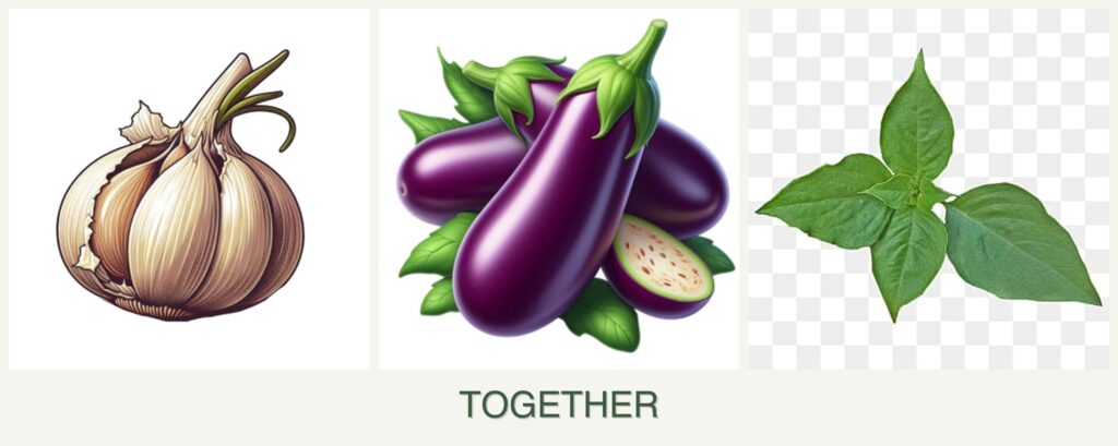 - Pest Repellent Properties: Garlic’s natural pest-repelling ability can protect eggplant and basil from aphids and other pests.