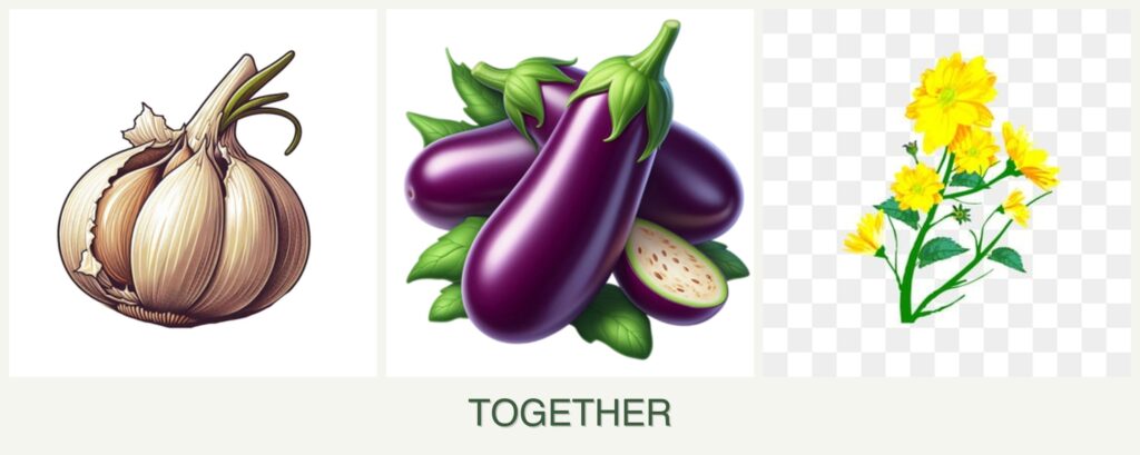 - Pest Control: Garlic repels pests that commonly affect eggplants, while calendula attracts beneficial insects.