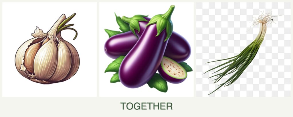- Pest Control: Garlic and chives act as natural insect repellents, protecting eggplants from pests.