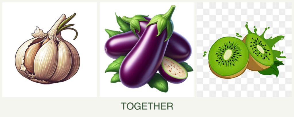 While garlic, eggplant, and kiwi may not be ideal companions, understanding their benefits can help when pairing them with other plants: