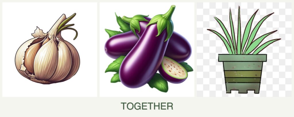 - Harvesting Considerations: Garlic and lemongrass can be harvested without disturbing eggplant roots if planted with proper spacing.