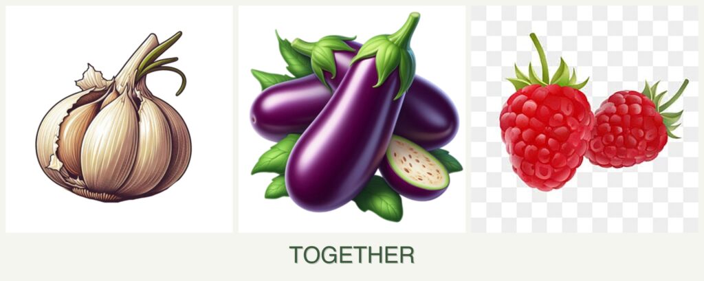 Can you plant garlic, eggplant and raspberries together?