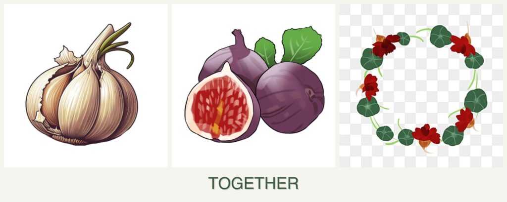 - Pest Control: Garlic’s natural pest-repelling ability benefits both figs and nasturtiums.