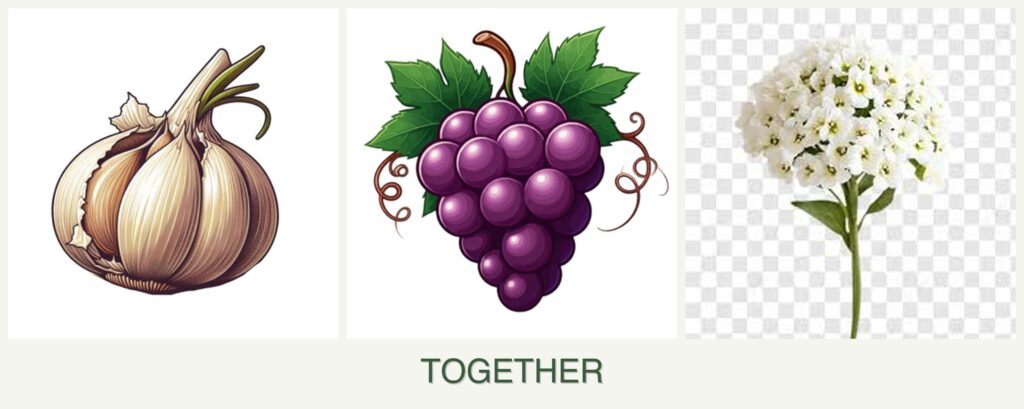 - Pest Control: Garlic acts as a natural pest deterrent, protecting grapes and alyssum.
