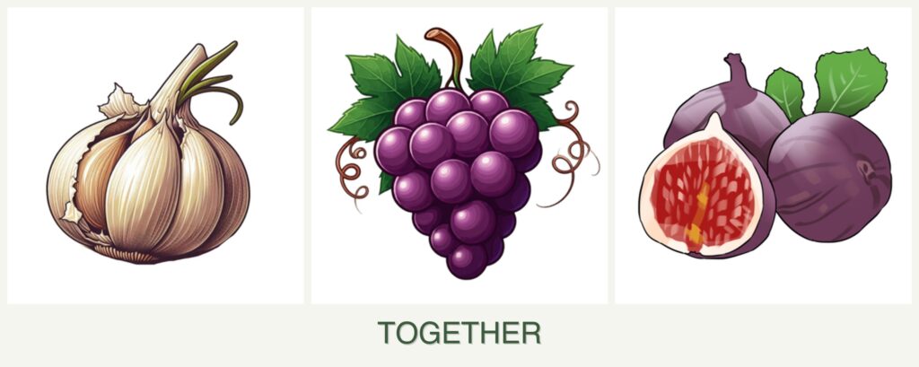 - Pest Control: Garlic acts as a natural pest deterrent, which can help protect grapes and figs from common pests.