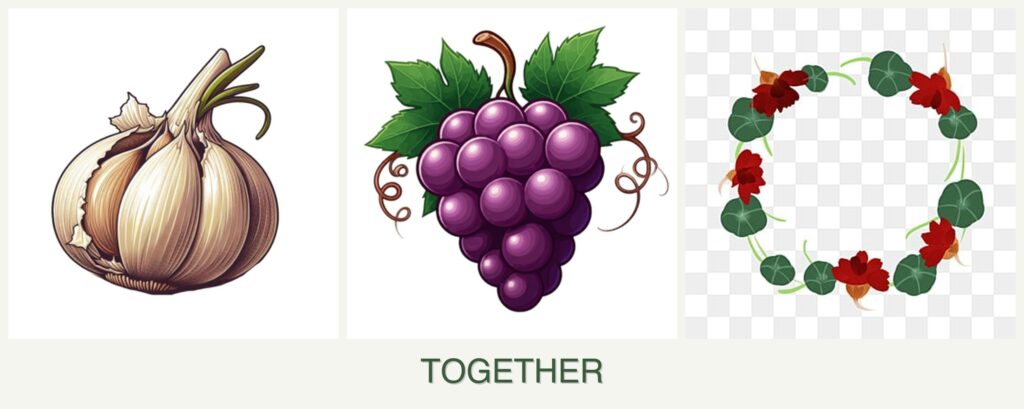 Planting garlic, grapes, and nasturtiums together offers several advantages: