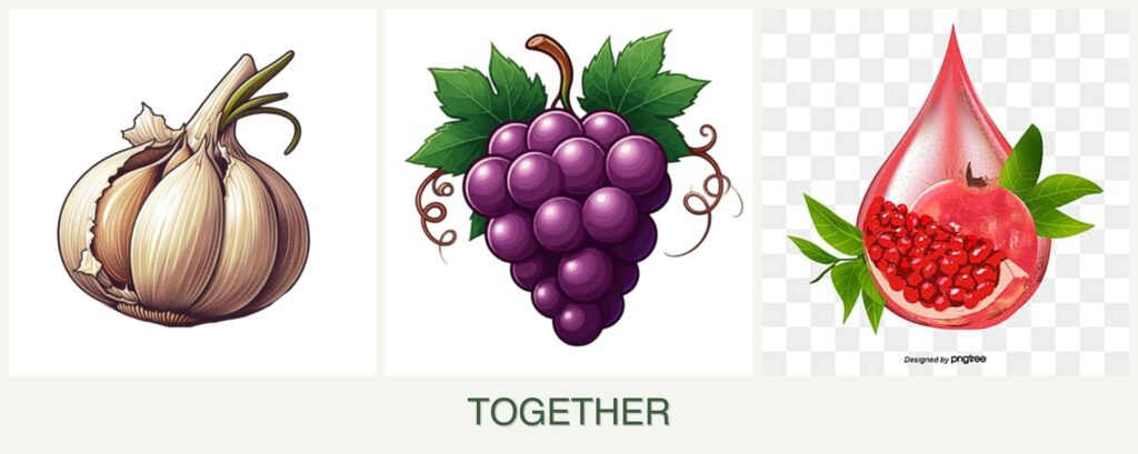 Planting garlic, grapes, and pomegranates together offers several benefits: