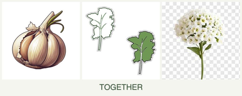 - Pest Control: Garlic’s strong aroma repels many common pests, while alyssum attracts beneficial insects that protect kale.