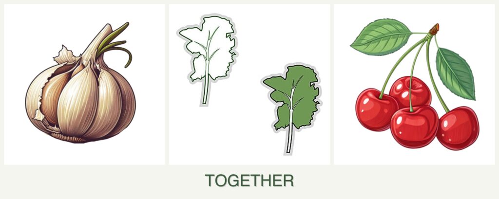 - Resource Competition: While garlic and kale coexist well, cherries require more space and resources, which can lead to competition.