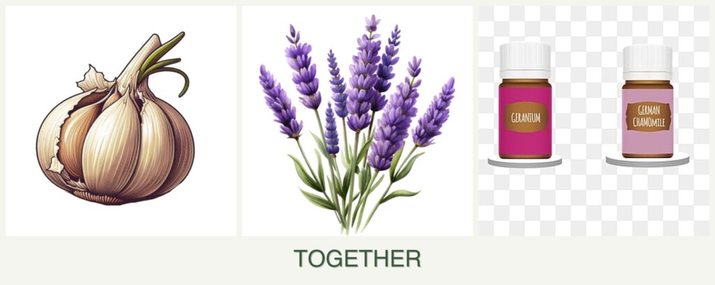 Planting garlic, lavender, and geraniums together offers several benefits:
