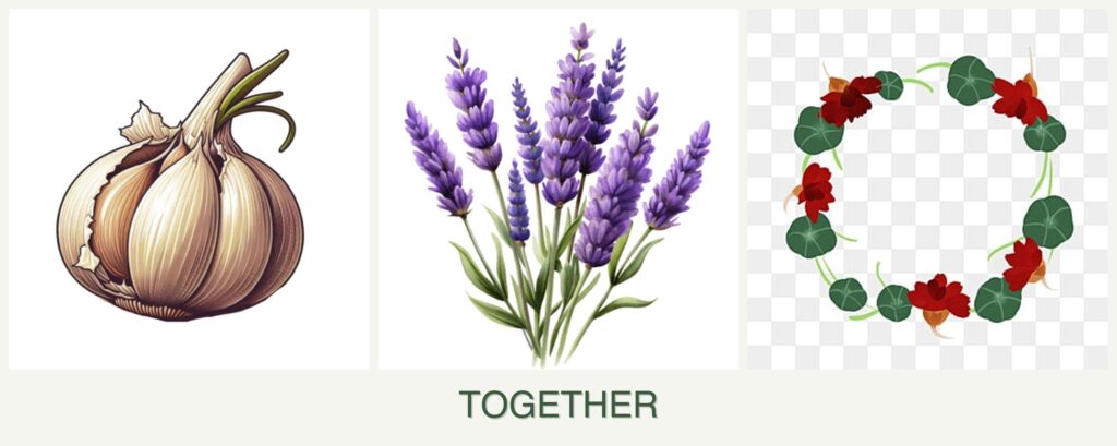 Planting garlic, lavender, and nasturtiums together offers several advantages: