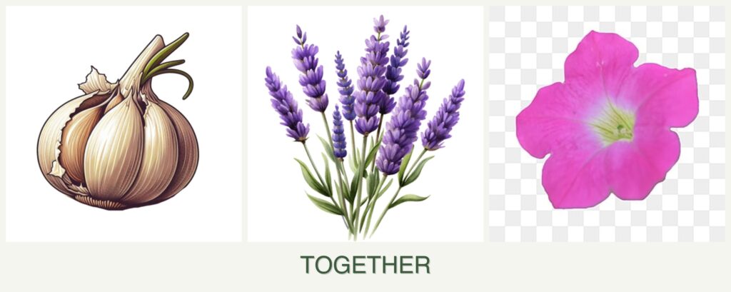 Pest Control: Garlic’s natural pest-repelling properties can protect lavender and petunias from some common garden pests.