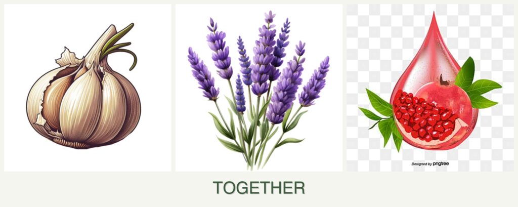 Planting garlic, lavender, and pomegranates together can bring several benefits: