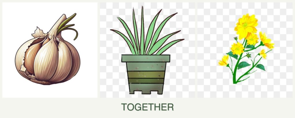 - Garlic acts as a natural pest repellent, deterring insects like aphids and snails, which can damage lemongrass and calendula.
