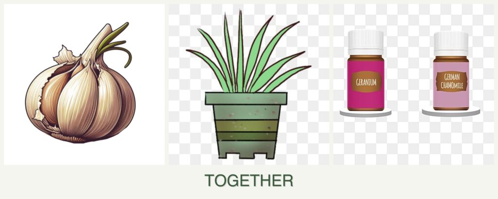 Planting garlic, lemongrass, and geraniums together offers several benefits: