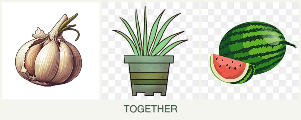 Pest Repellent Properties: Garlic acts as a natural insect repellent, which can protect melons and lemongrass from pests.