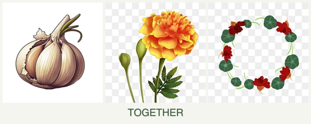 When to Plant: Garlic is typically planted in the fall, while marigolds and nasturtiums can be planted in spring after the last frost.