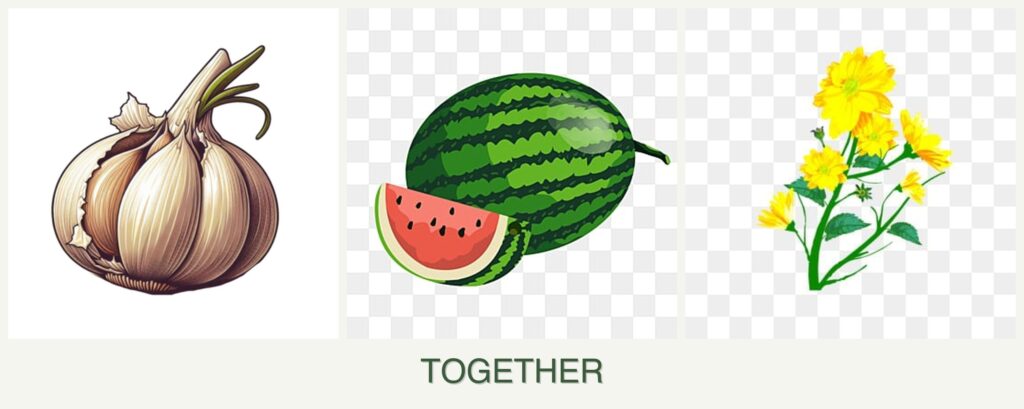 - Pest Control: Garlic’s sulfur compounds can repel aphids and other pests, protecting melons and calendula.