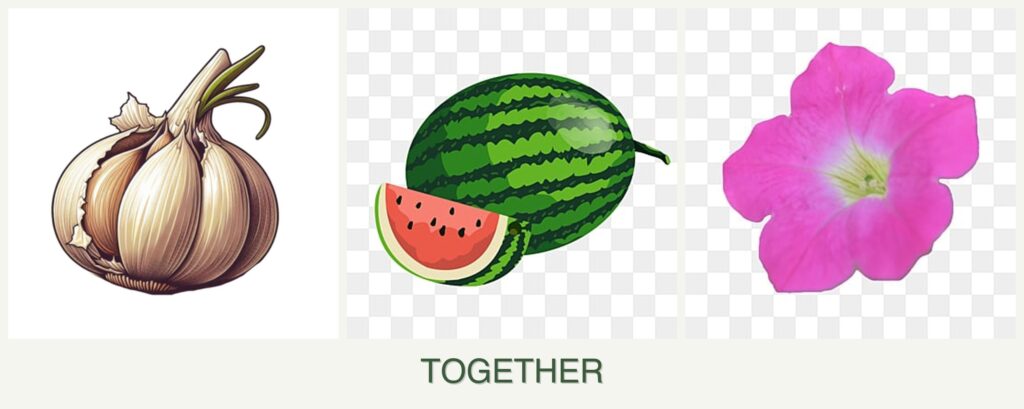 - Different Watering Needs: Melons require more water than garlic and petunias, necessitating careful watering strategies.