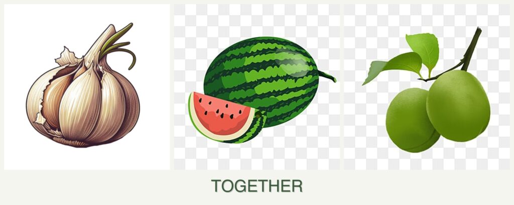 - Avoid planting garlic with legumes, melons with potatoes, and plums with walnut trees.