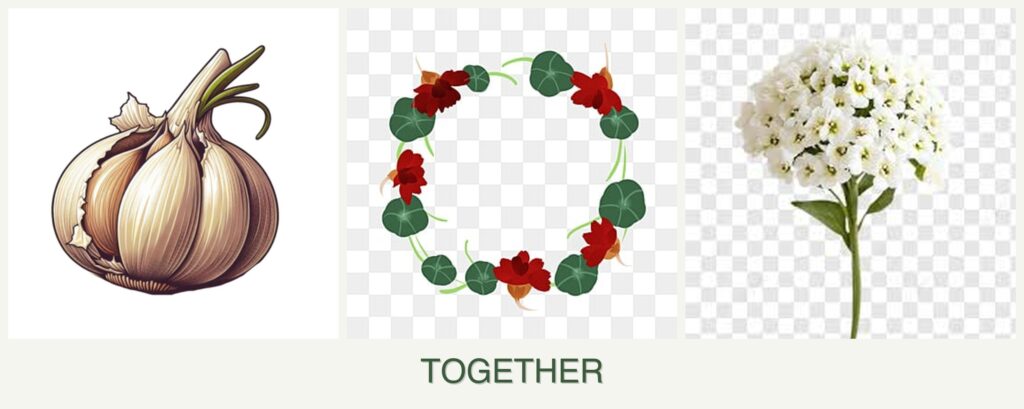 Planting garlic, nasturtiums, and alyssum together offers several advantages: