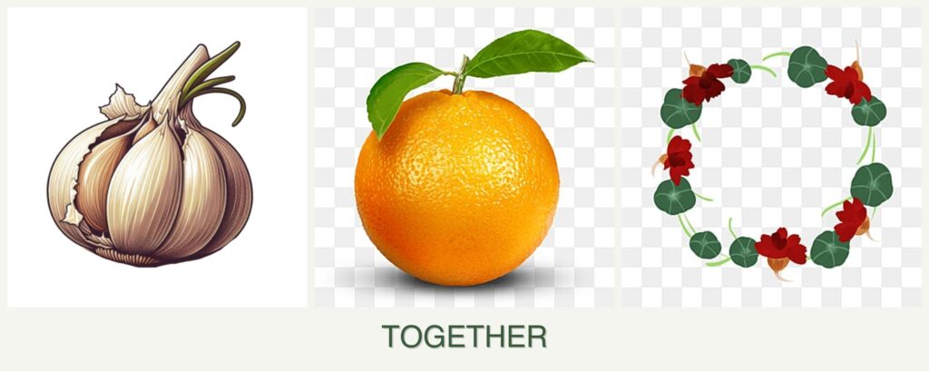 - Garlic is known for its pest-repellent properties, particularly against aphids and beetles, which can benefit both oranges and nasturtiums.