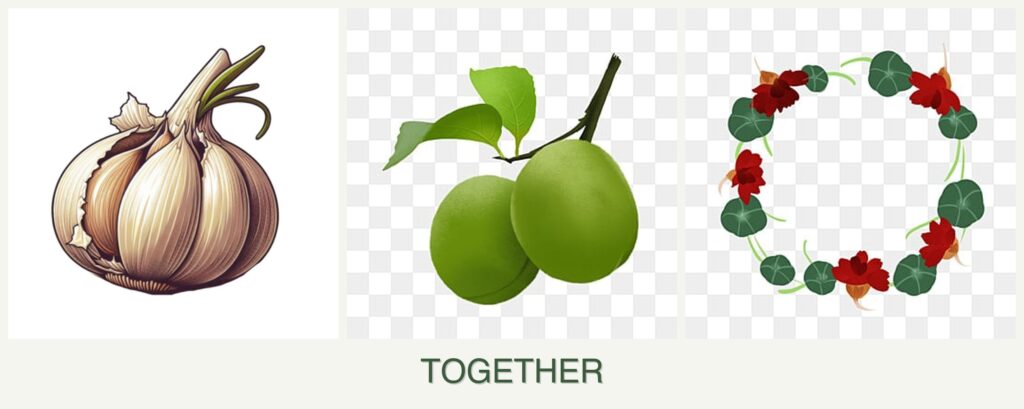 - Pest Repellent Properties: Garlic’s natural sulfur compounds repel pests, while nasturtiums attract aphids away from plums.