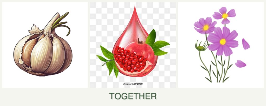- Pest Control: Garlic’s natural sulfur compounds deter pests, protecting pomegranates and cosmos.