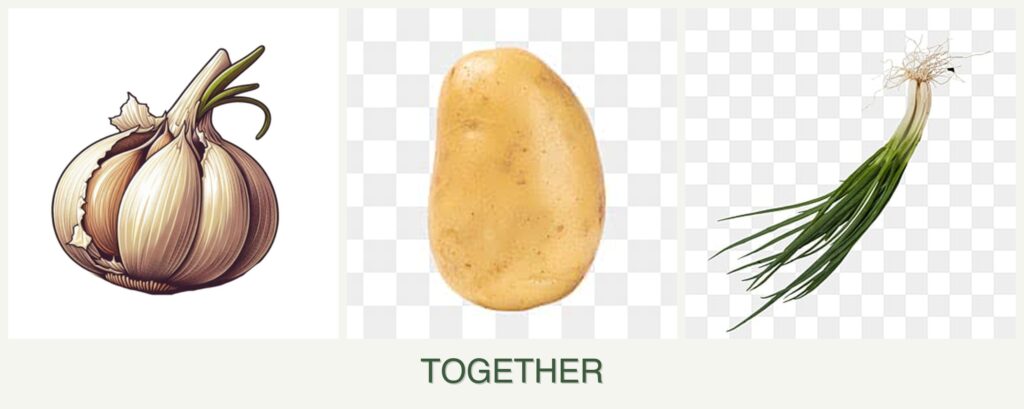 - Pest Control: Garlic and chives are natural pest repellents, which can protect potatoes from insects like aphids and beetles.