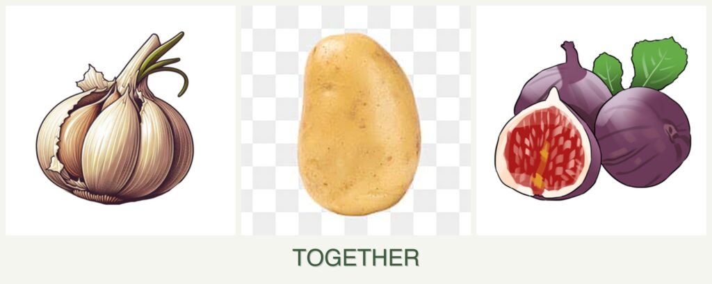 - Growth Requirements: Garlic and potatoes have similar growing seasons and conditions, thriving in cooler temperatures. In contrast, figs prefer warm climates and have different seasonal needs.