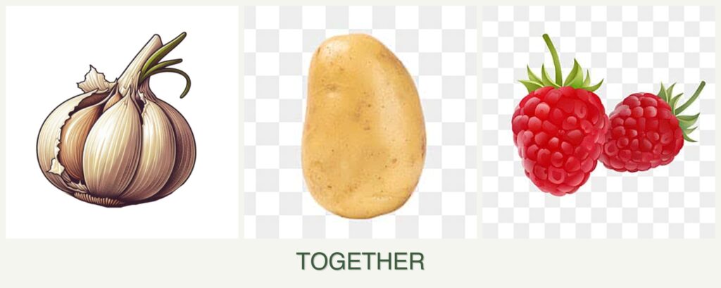 - Pest Repellent Properties: Garlic acts as a natural deterrent against aphids and other pests, protecting both potatoes and raspberries.