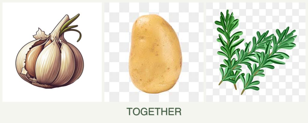 Planting garlic, potatoes, and rosemary together offers several benefits: