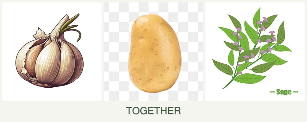 - Pest Repellent Properties: Garlic and sage naturally deter a variety of pests, protecting potatoes from common threats.