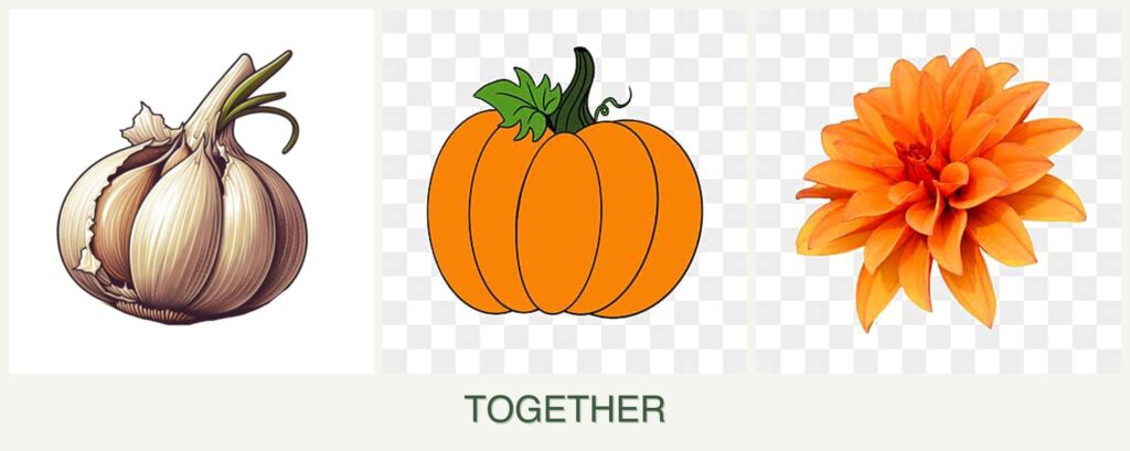 While garlic, pumpkin, and dahlias may not be ideal companions, there are some benefits to consider: