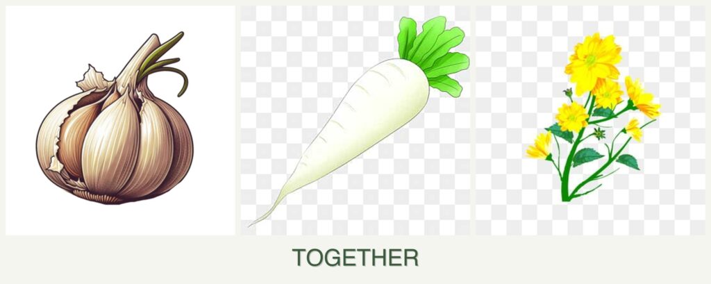 - Harvesting Considerations: Harvest radishes before they interfere with garlic’s growth.