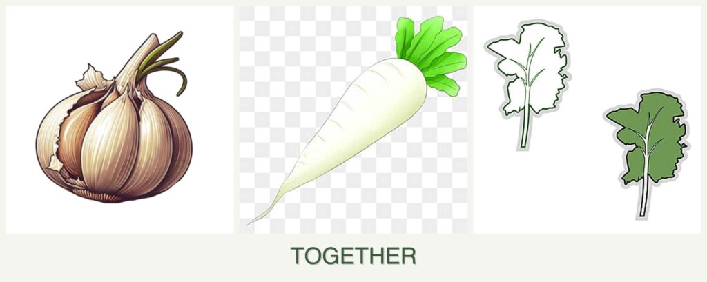 - Improved Flavor and Growth: Garlic can enhance the flavor of kale and radishes.