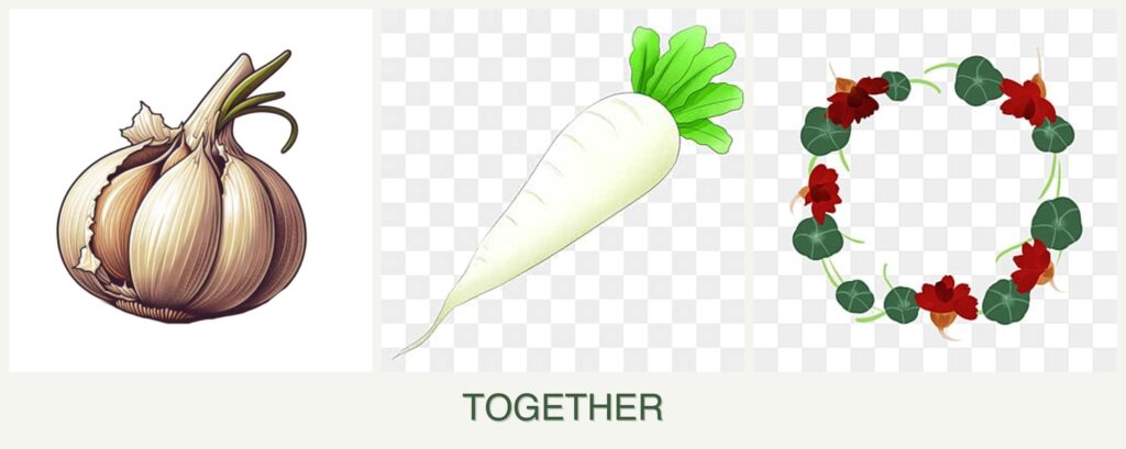 Planting garlic, radishes, and nasturtiums together offers several advantages:
