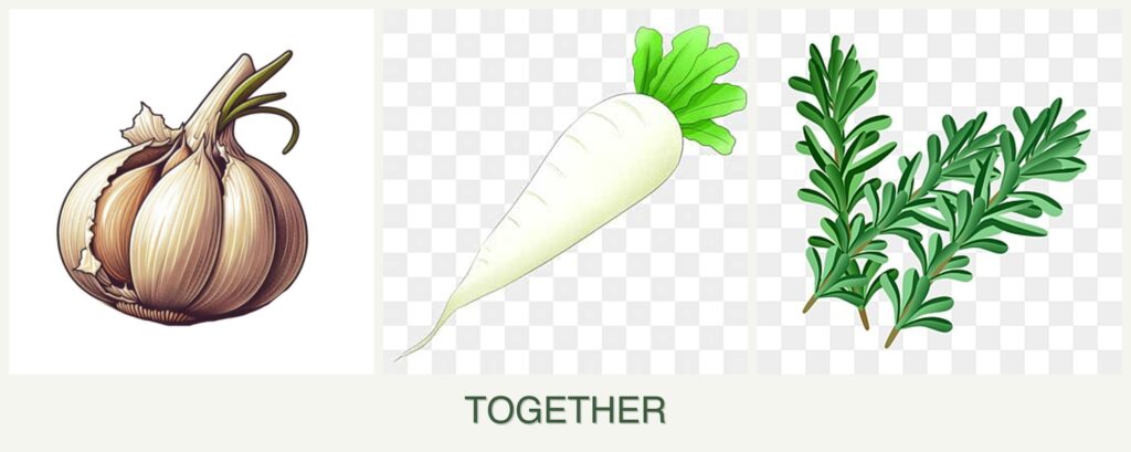 - Pest Control: Garlic and rosemary can repel common garden pests, providing natural protection for radishes.