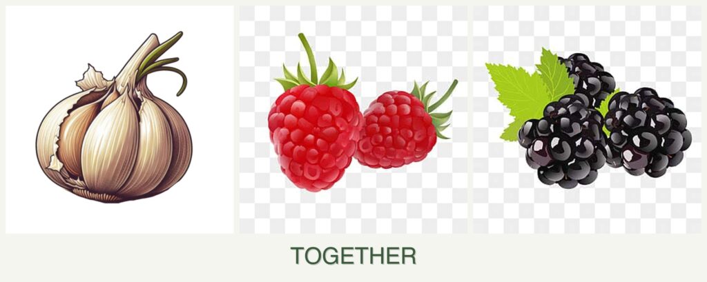 - Resource Competition: Raspberries and blackberries require more nutrients and water, which can lead to competition with garlic.