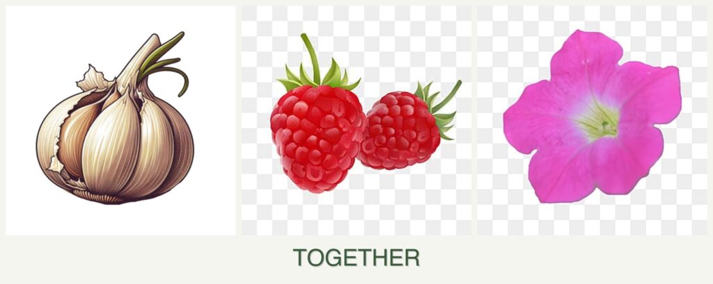 Can you plant garlic, raspberries and petunias together?