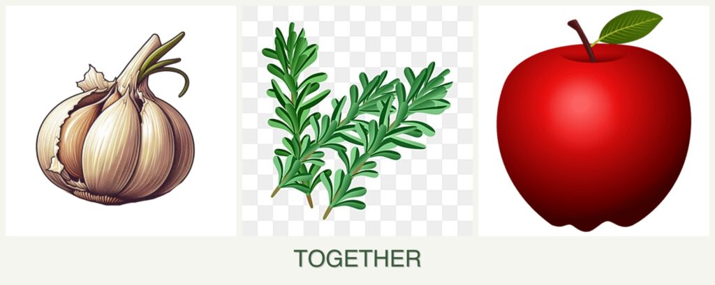 - Pest Control: Garlic acts as a natural pest deterrent, which can benefit both rosemary and apple trees.