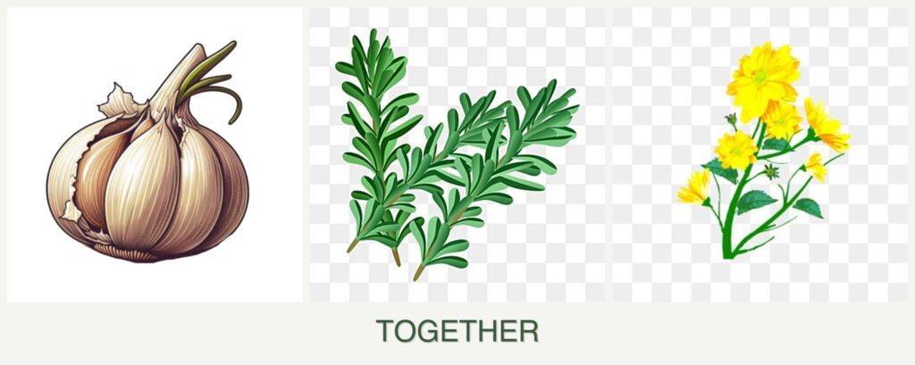 Planting garlic, rosemary, and calendula together offers several benefits: