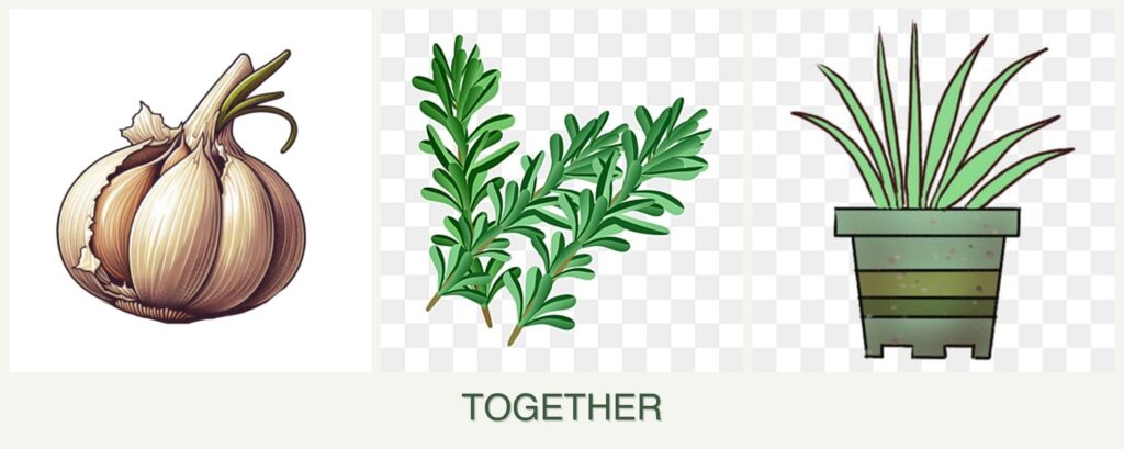 - Pest Control: Garlic repels aphids and other pests, benefiting rosemary and lemongrass.
