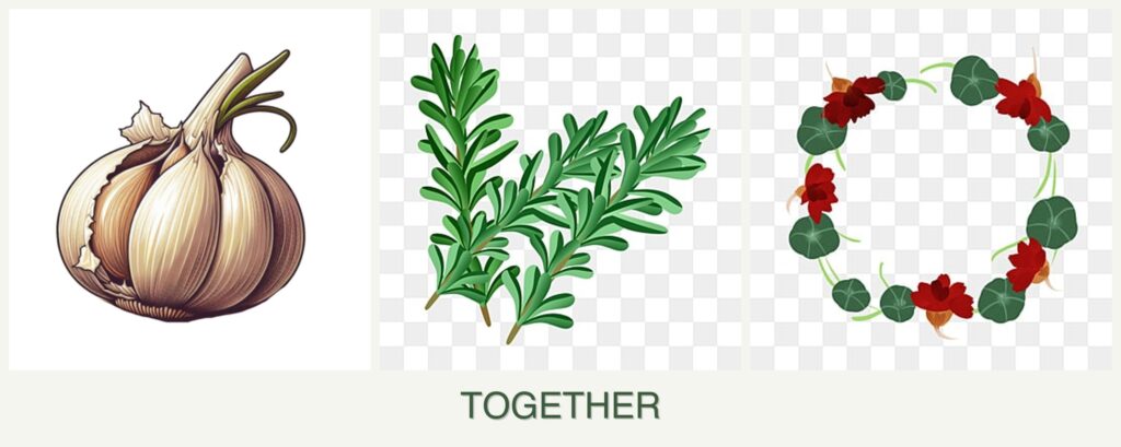 - Nutrient Needs: Garlic and rosemary have similar nutrient requirements, while nasturtiums are less demanding, making them a good match in terms of soil fertility.