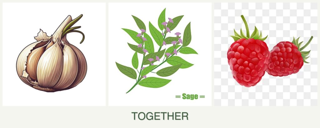 - Pest Repellent Properties: Garlic and sage naturally deter pests, protecting raspberries from potential infestations.
