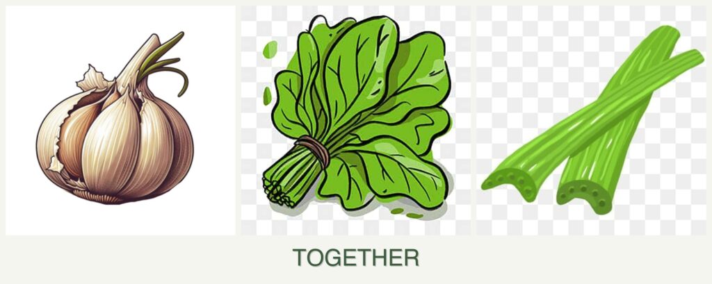 - Pest Control: Garlic acts as a natural pest deterrent, protecting spinach and celery from common garden pests like aphids and beetles.